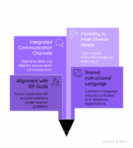 When teachers, paraprofessionals, and tutors work together as a unified team, the benefits for students go far beyond aligned instruction. Students experience greater stability, trust, and emotional safety in the classroom, key conditions for academic growth, especially for students with Individualized Education Programs (IEPs). Strong adult collaboration translates directly into stronger student outcomes in the following ways: